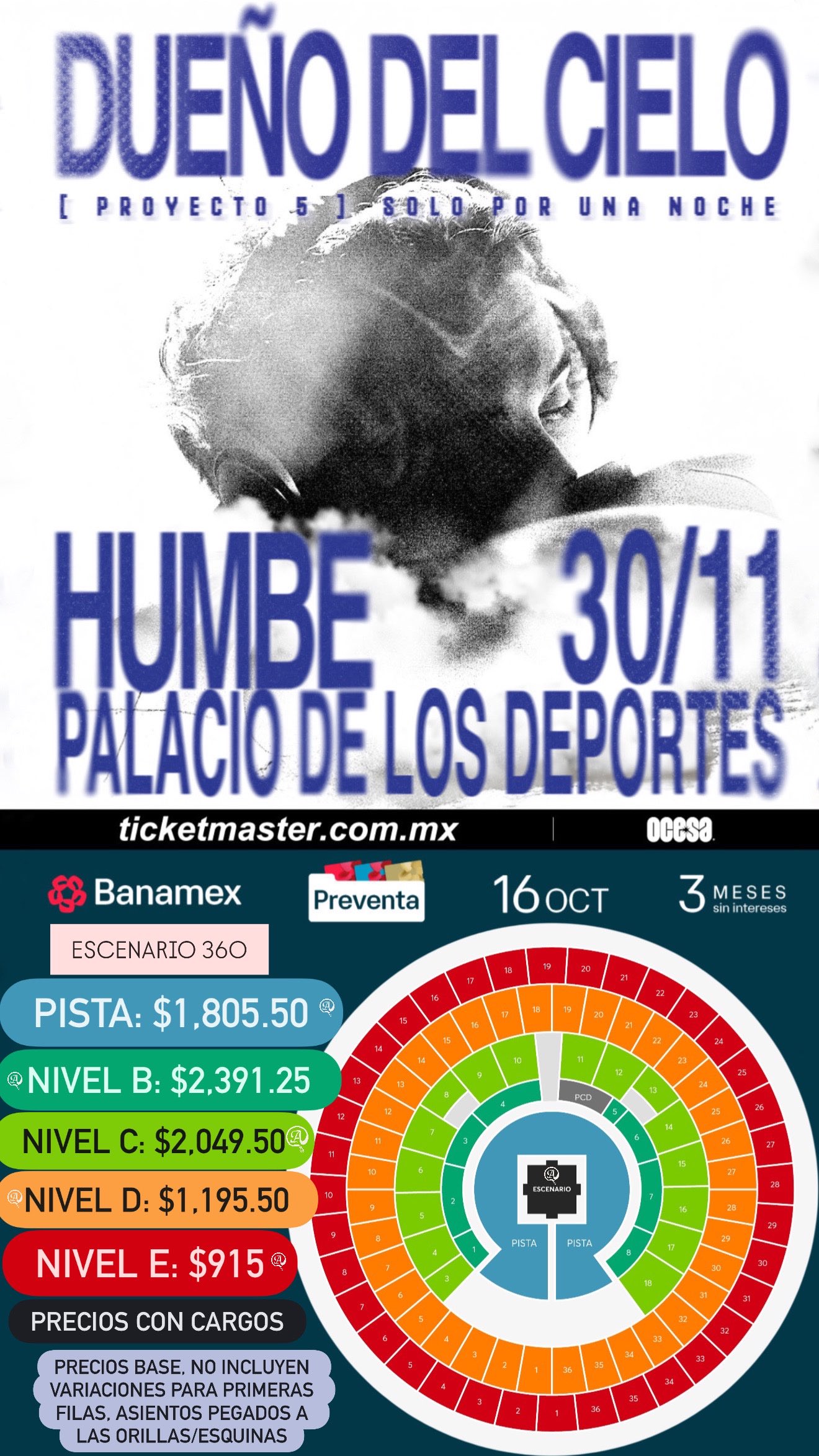El talento de Humbe vuelve a brillar y esta vez lo hará a lo grande. El cantante regiomontano anunció su regreso a los escenarios con un espectáculo muy especial: “Dueño del Cielo”, un concierto en formato 360° que se realizará el 30 de noviembre de 2025 en el Palacio de los Deportes de la Ciudad de México.