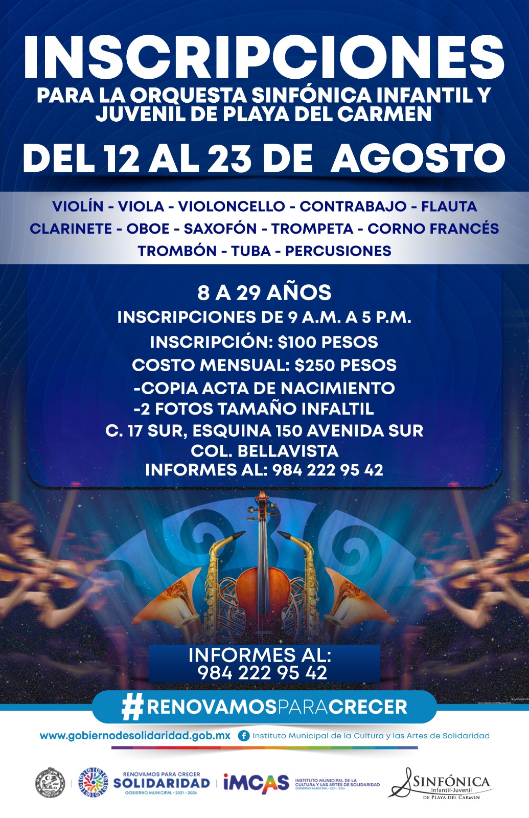 ABREN INSCRIPCIONES PARA ESCUELA DE INICIACIÓN MUSICAL DE SOLIDARIDAD